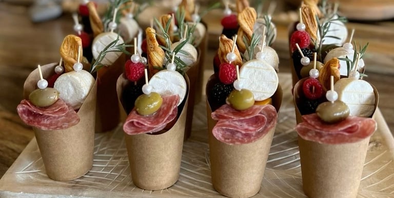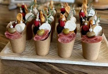 Individually portioned and perfectly presented, our pre-made charcuterie cups and boxed boards offer a convenient way to enjoy elevated charcuterie without sacrificing style or quality. Each cup or box includes a carefully selected assortment of cheeses, meats, seasonal fruits, and accompaniments—ideal for grab-and-go events, corporate functions, showers, and casual gatherings. Elegant, easy, and always delicious.